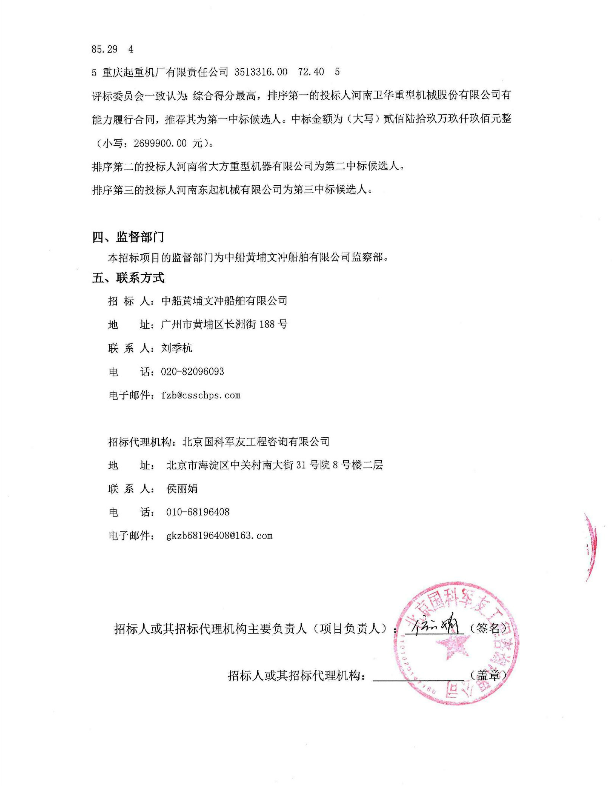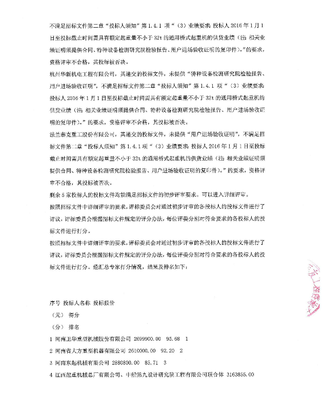 移動版:32t橋式起重機項目中標候選人公示