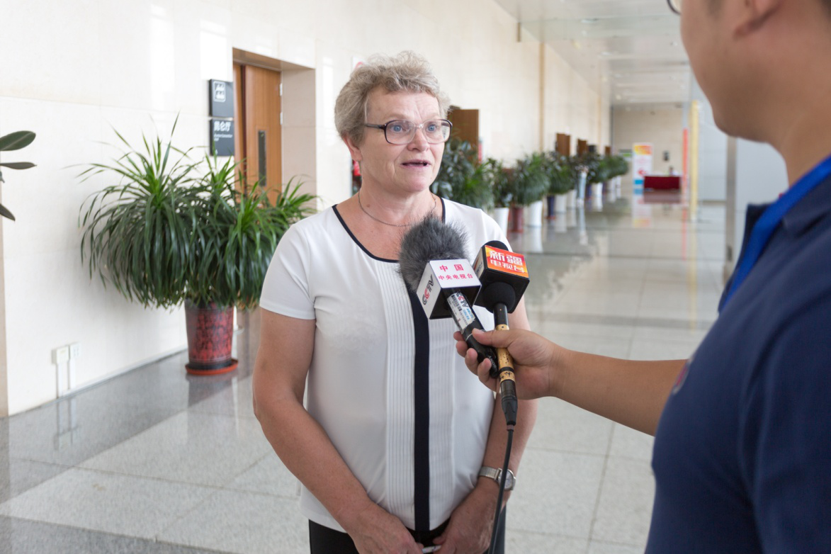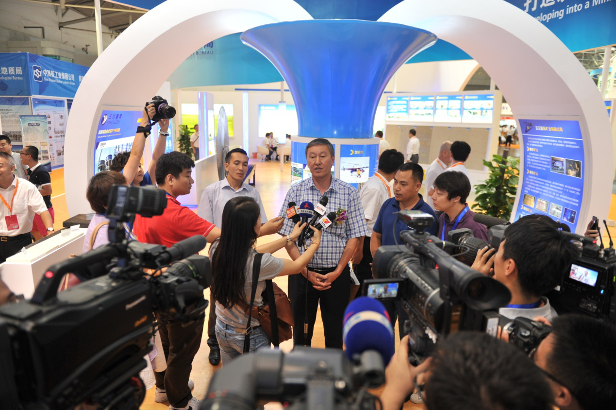 吉爾吉斯共和國地質礦產資源蜀國務秘書蘇坦諾夫在礦博會會場接受媒體采訪