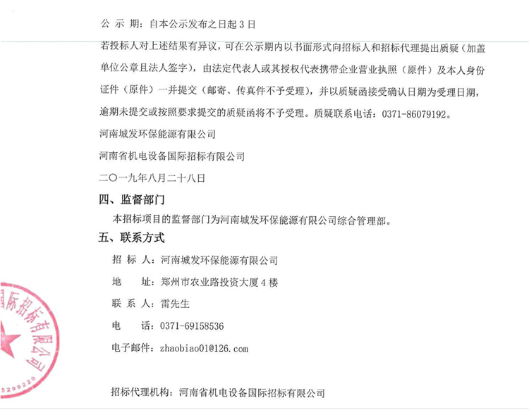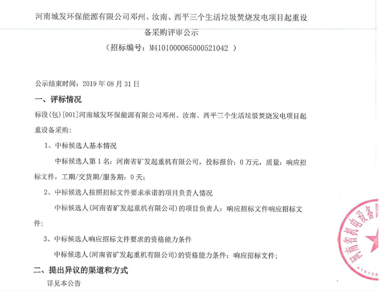 移動版:河南城發環保能源有限公司鄧州、汝南、西平三個生活垃圾焚燒發電項目起重設備采購評審公示