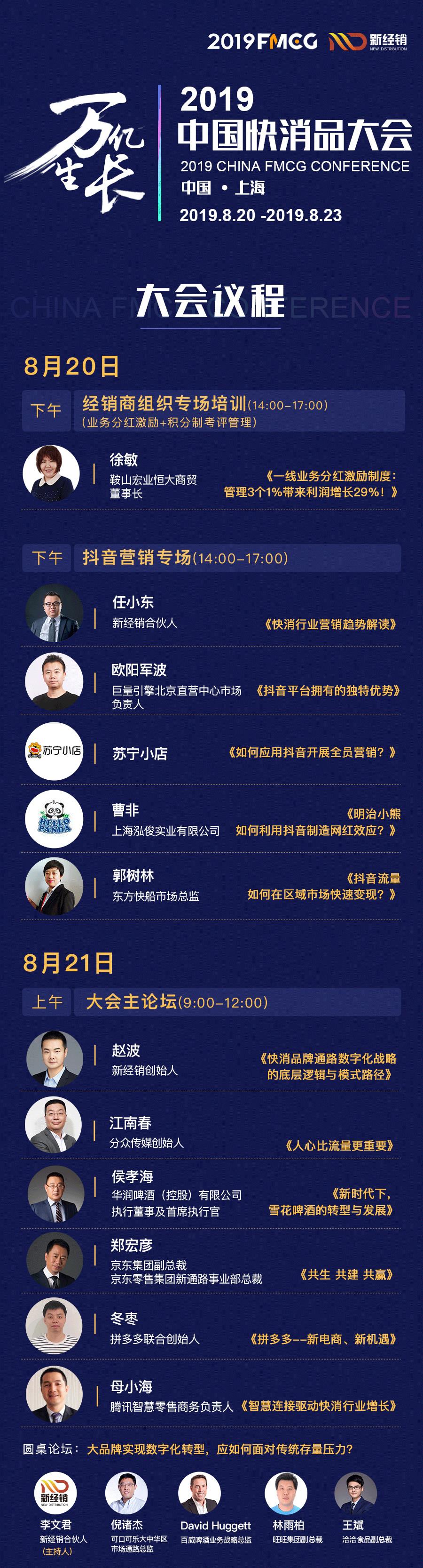 PS:2019年8月20日-23日,一年一度由新經銷舉辦的快消品行業盛會「萬億生長·2019中國快消品大會」即將在上海震撼開啟!100餘位重量級分享嘉賓,4000+快消行業從業人員,18場重磅議題。本屆大會以“萬億生長”為主題、“創新產品、創新渠道及創新營銷”為話題,發掘新時代下支撐企業未來十年快速增長的新模式,新方法,新趨勢。