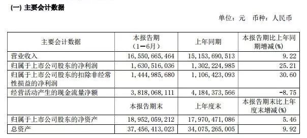 樂收生意寶訊:8月15日,青島啤酒公布了2019年半年報。2019年上半年,青島啤酒股份有限公司實現營業收入人民幣165.51 億元,同比增長 9.22%;實現歸屬於上市公司股東的淨利潤人民幣16.31 億元,同比增長 25.21%。