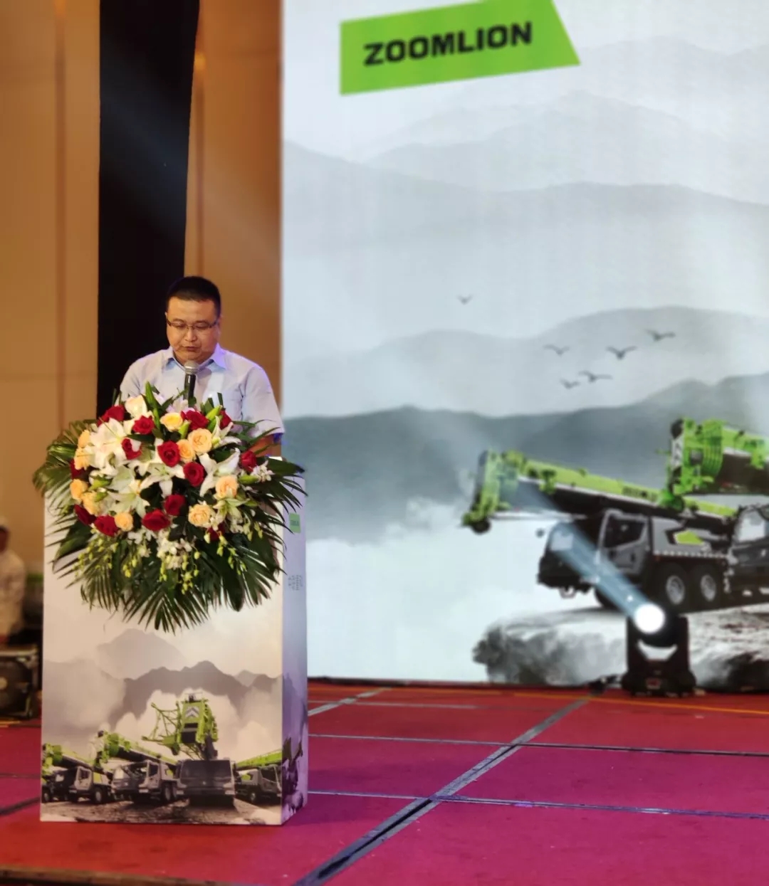 在本次會議上,中聯重科工程起重機公司副總經理羅同春先生表示中聯重科始終秉持工匠之心,為廣大客戶帶來“高品質、高性能、高智能、重體驗”七大新產品。本次展會現場重點向客戶推介7款新品,著重推介產品的性能及優勢,深受現場客戶一致好評。