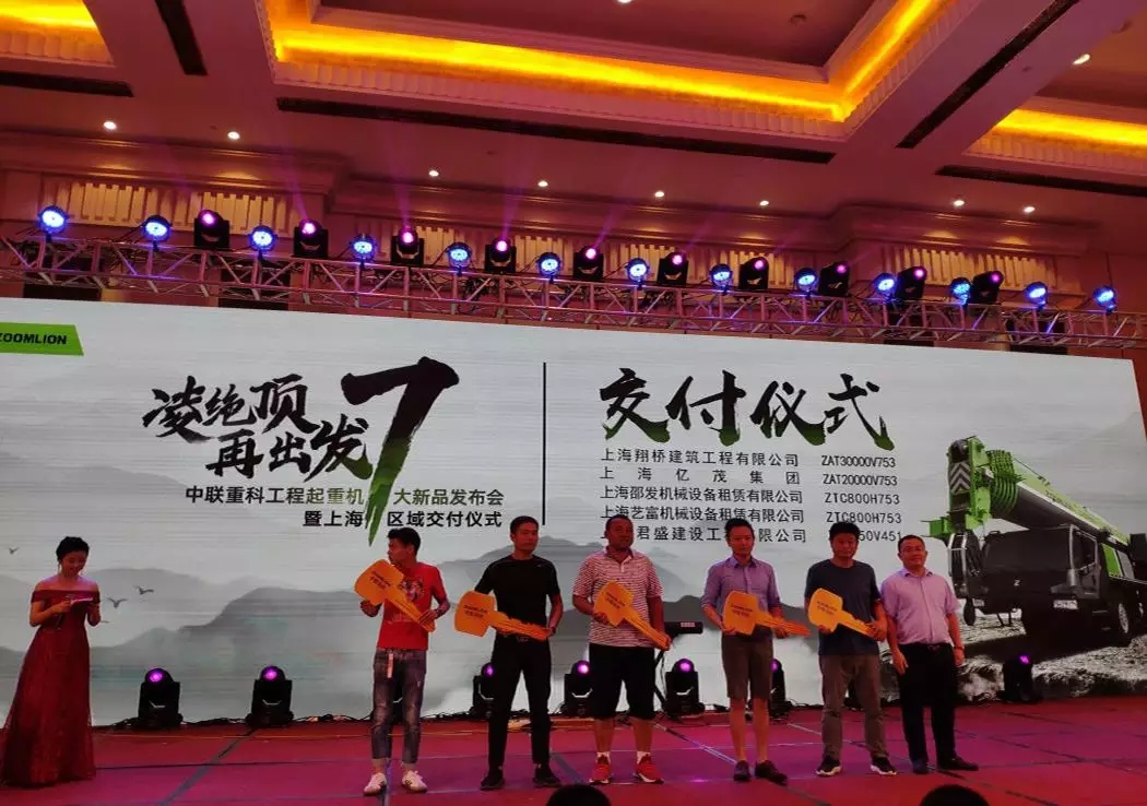 2019年8月25日,中聯重科上海區域380多位貴賓相聚申城,共同參加以“淩絕頂 再出發”為主題的中聯重科工程起重機七大新品發布會暨上海區域交付儀式的舉行,分享中聯重科起重機產品的創新與成就。