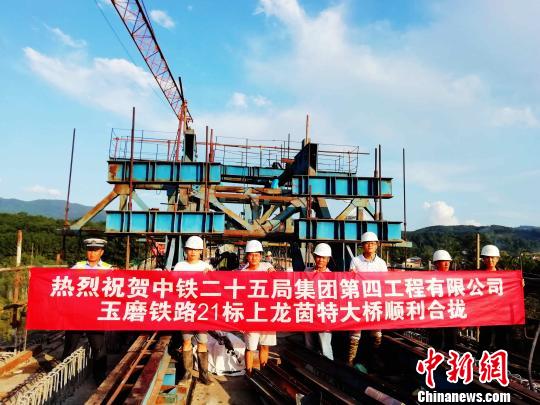 記者10日從中國鐵路昆明局集團獲悉,當天中老昆(明)萬(象)鐵路玉溪至磨憨段上龍茵特大橋連續梁順利合龍,工程建設取得突破性進展。