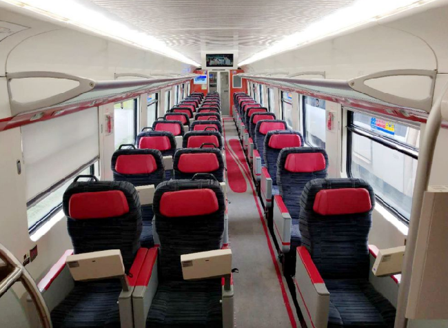 ETS2米軌動車組商務座椅配備視頻點播係統,可以實現影音娛樂、遠程點餐、服務呼叫等功能。中車株機供圖