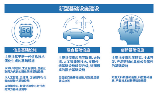 如果說,以鐵路、公路、橋梁等建設為主的傳統基礎設施建設麵向的是工業經濟時代,那麼以信息、融合和創新為核心內涵的新型基礎設施建設麵向的是數字經濟時代。