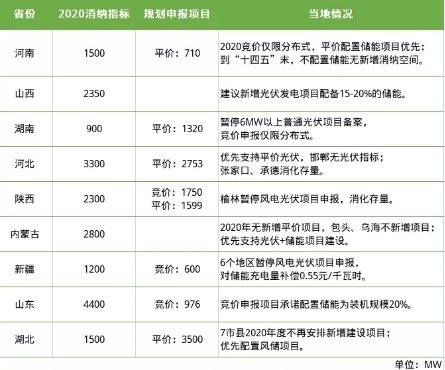 湖北2020年平價政策文件指出,目前已申報的7.65GW光伏項目須通過競爭性配置爭搶省內3.5GW光伏指標。同時為滿足儲能建設需求,在項目配置中,對接入同一變電站的風儲與光伏發電項目,優先配置風儲項目。