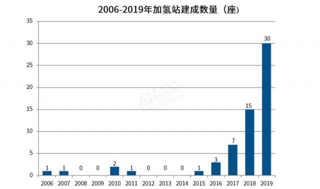 加氫站方麵,2019 年我國加氫站建成 30 座,同比增加 100%。從 2006 年第一座加氫站落地開始,截止到 2019 年底,我國累計建成 61 座加氫站。如今,氫能基礎設施越來越受到重視,按照 2019 年增長速度,2020 年實現“ 100 座加氫站”的目標大有希望。