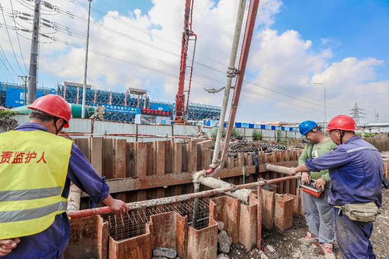 圖為國網大連供電公司施工人員正在對電纜隧道進行澆築。