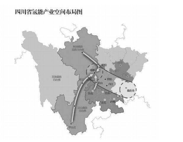 在空間布局方麵,我省將圍繞成渝地區雙城經濟圈建設的戰略部署,按照省委 “一幹多支、五區協同”發展要求,以各地自然資源稟賦及現有氫能相關產業為基礎,遵循合理配置、重點突出、有序協同、互聯互通的原則,形成“一軸、一港、一區、三路”的“1113”發展格局。