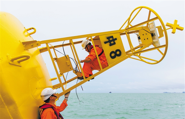 在過去18個月內,海口航標處組織對瓊州海峽156座燈浮標上的遙控遙測設備統一更新升級安裝了科技含量高的北鬥係統。