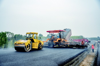 同時施工的還有跨日蘭高速南側至終點路段的瀝青鋪設。在現場,一台大型瀝青攤鋪機正在緊張作業,施工人員用專業工具檢測攤鋪厚度,4台壓路機則對剛鋪完瀝青的路麵進行壓實。施工人員告訴記者,這台攤鋪機是全幅作業施工,可對整個路麵一次性瀝青攤鋪,“這樣就減少了中間的縱向接縫,保證了路麵的平整度。”