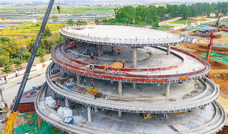 作為海南重點園區之一,海南未來產業園致力於打造物物相聯、物人相聯,集工作、生活於一體的智慧社區。工程采取整體開挖地基建設,目前樁基工程已完成三分之一。首期(啟航區I期)項目於2020年11月13日開建,包括商業、住宅、研發等業態,預計2024年底完工。海南日報記者 袁琛 攝