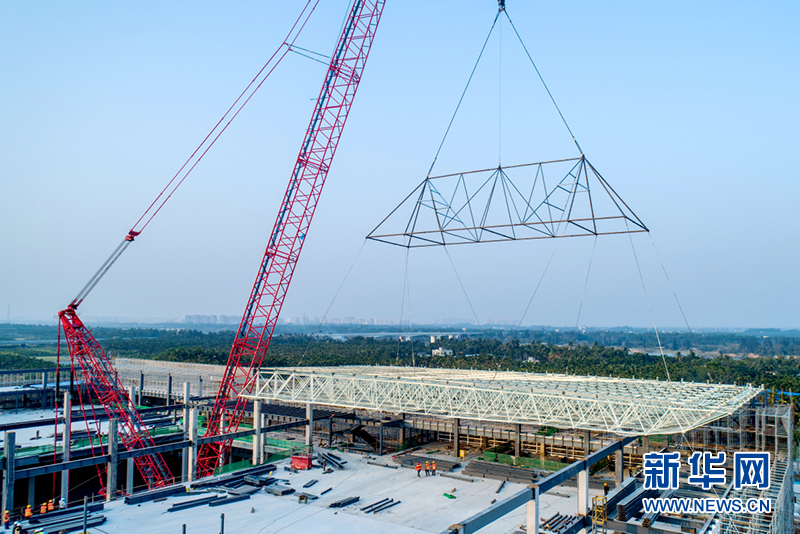 項目完成首塊吊裝(1月18日攝)。新華網發