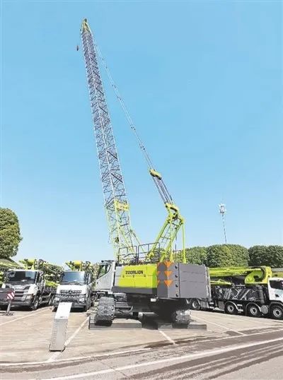 中聯重科麓穀工業園內供客戶參觀的一台履帶式起重機成品