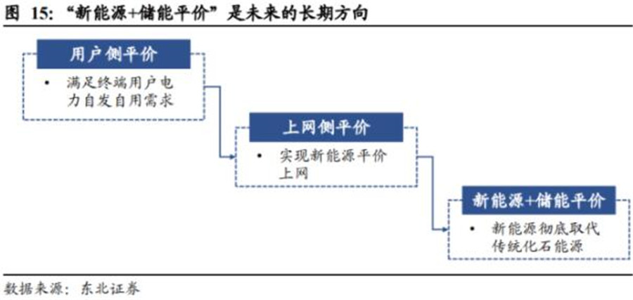 在基本實現上網側平價的基礎上,未來新能源將朝著“新能源+儲能平價”的目標繼續前進。