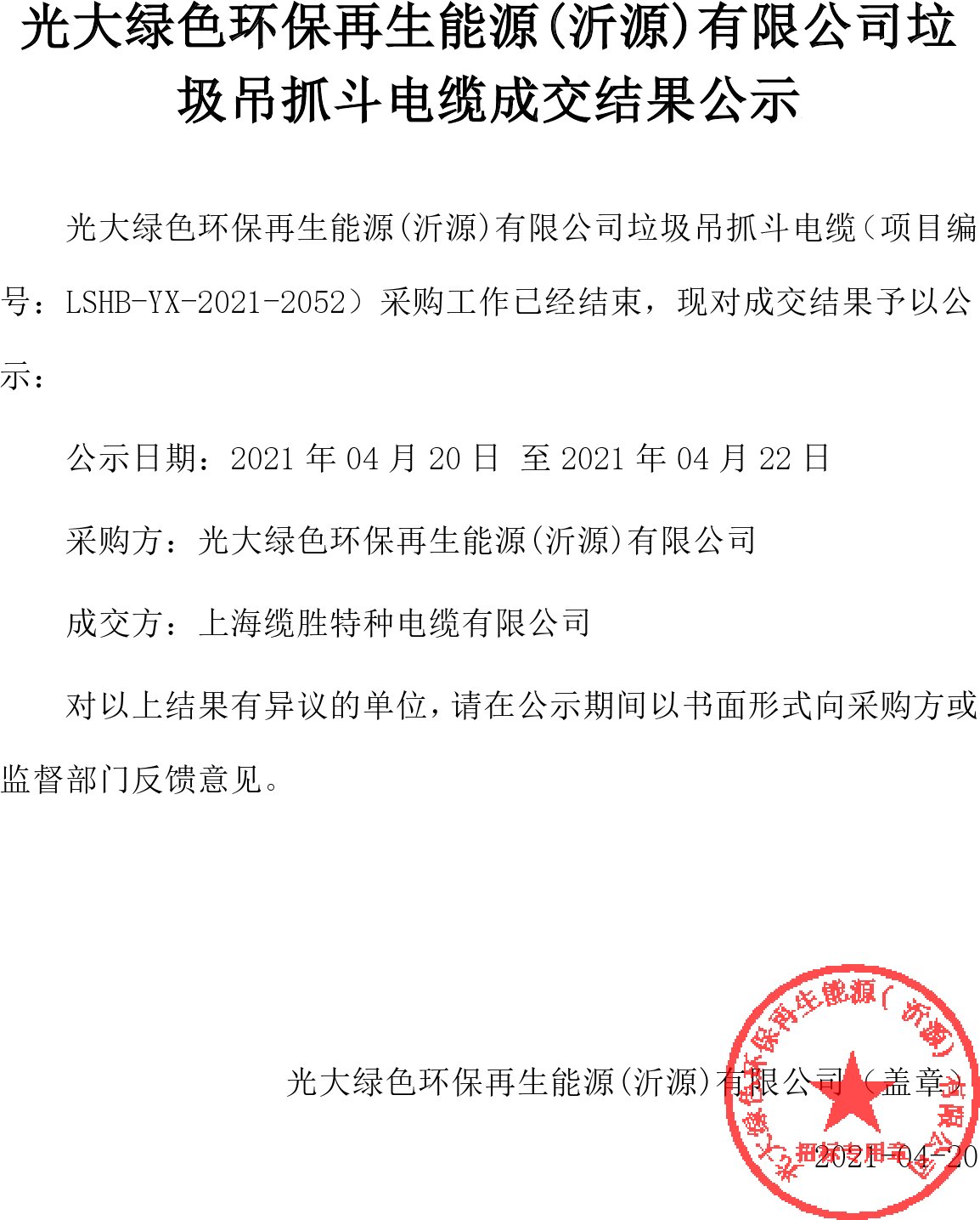 移動版:山東:垃圾吊抓鬥電纜成交結果公示