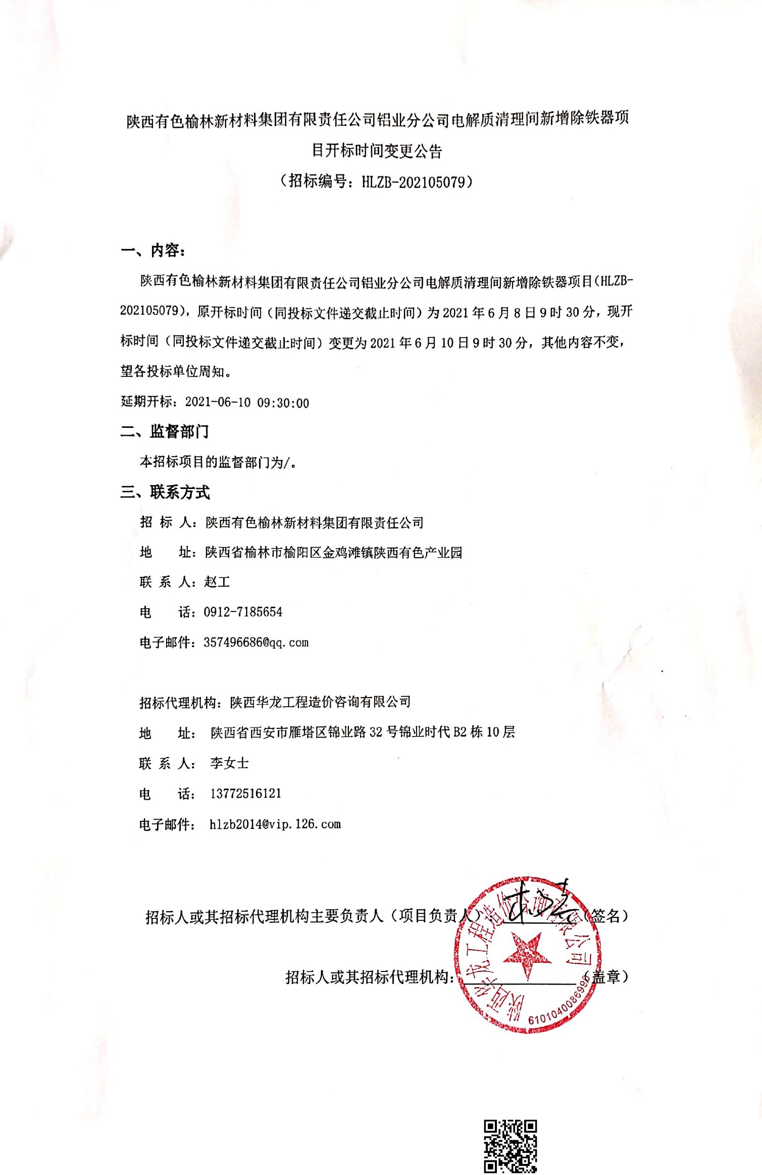 移動版:陝西:電解質清理間新增除鐵器項目開標時間變更公告