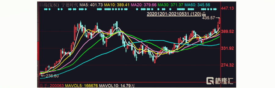 6月1日動力電池龍頭寧德時代股價新高,市值破萬億。至此,創業板首家萬億公司誕生。時隔四個月,寧德重新站上了高點,眾望所歸。