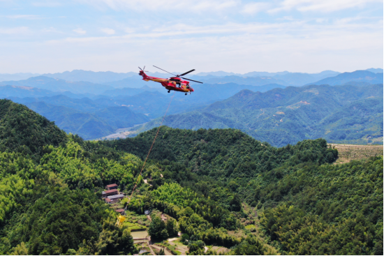 “如果按照傳統施工方案,需運輸大量材料、工器具和大型設備至施工點,這要求提前建設施工道路和重型索道運輸通道,這會對線路沿線生態環境造成很大破壞。”丁鵬傑給我們算了一筆生態賬,“與我們常用的重型索道運輸相比,直升機作業可節省林木砍伐約17500平方米(26畝),有效保護沿線生態環境,避免植被砍伐和水土流失,為今後推廣直升機施工技術提供借鑒。”