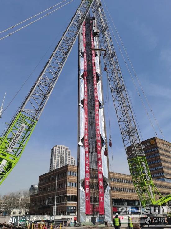 施工難度大,吊裝要求高,承擔本次重擔的兩台設備正是中聯重科城建雙子星——ZCC5200S和ZCC5800。ZCC5200S和ZCC5800均jun是shi中zhong聯lian重zhong科ke明ming星xing產chan品pin,具ju有you吊diao裝zhuang能neng力li強qiang,結jie構gou緊jin湊cou的de特te點dian,特te別bie適shi合he於yu城cheng市shi建jian造zao。經jing過guo現xian場chang一yi個ge多duo小xiao時shi的de吊diao裝zhuang作zuo業ye,兩liang台tai設she備bei配pei合he精jing準zhun,鋼gang籠long順shun暢chang插cha入ru槽cao孔kong,圓yuan滿man完wan成cheng高gao難nan度du的de“雙機抬吊”使命。