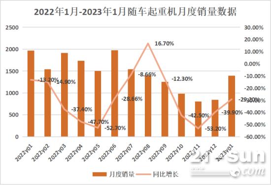 據我國工程機械工業協會對16家隨車起重機製作企業計算,2023年1月當月出售各類隨車起重機1393台,同比下降29.2%。