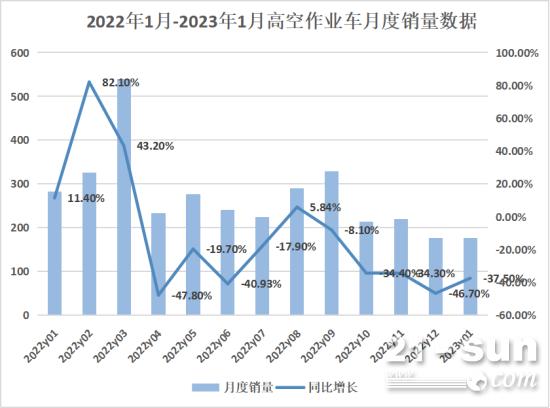 據我國工程機械工業協會對9家高空作業車製作企業計算,2023年1月當月出售各類高空作業車177台,同比下降37.5%。