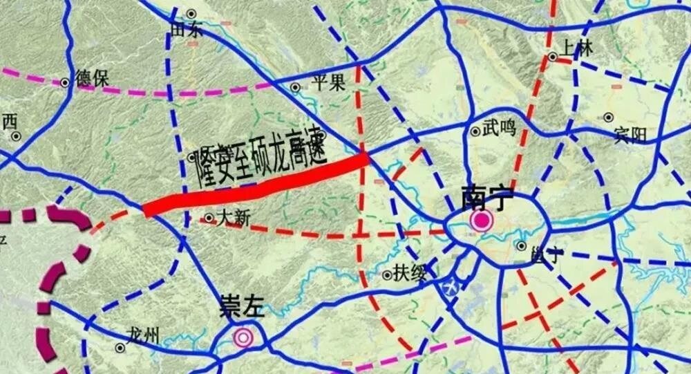 隆安至碩龍高速是蒼碩高速的一部分,從道路走向來看,可以說是國道G358的升級版。這條高速將和南寧至大新高速一同,成為大新、天等通往南寧市最便捷的兩條高速公路。