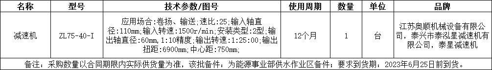- 物料名稱: 減速機 數量: 1 規格: ZL75-40-I 長度: 寬度: 厚度: 材質: