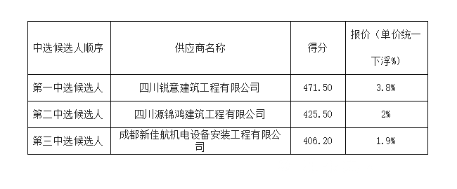 1.根據綜合評分法,我單位確定四川銳意建築工程有限公司成為本次采購項目的中選供應商。