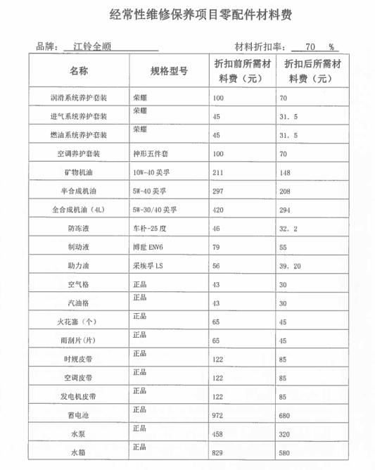 經常性維修保養項目零配件材料費: