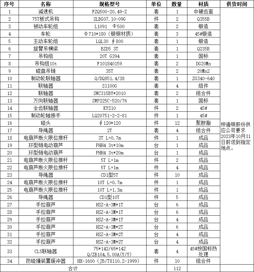 項目名稱: 起重機備件