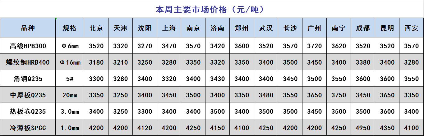 移動版:2025年1月第2周鋼材主要市場價格
