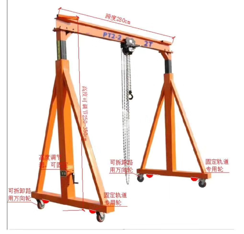 西安無軌電動小龍門360度旋轉操作方便—西安起重機廠家|西安天車安裝維修|西安起重設備常年維保|西安電動葫蘆|西安升降貨梯|陝西起重機|榆林起重機|寶雞起重機|延安起重機|鹹陽起重機|渭南起重機|鹹陽行吊|西安電梯。西安天成起重機械銷售有限公司主要經營:一、起重機類: 天車//行吊/行車、單梁起重、雙梁起重機、電動葫蘆雙梁起重機、   、起重、懸臂、壁栓式懸臂起重機、旋臂起重、LX懸掛起重機、LH葫蘆雙梁起重機、花架門式起重機、雙梁抓鬥起重機、QD吊鉤橋式起重機、QD冶金鑄造起重機、QE雙小車吊鉤橋式起重機、MH單主梁葫蘆門式起重機、MG雙橋吊鉤門式起重機、L單主梁門式起重機、升降平台類非標起重機的製造、改造、安裝、維修、保養等。 二、配套件類:各類國產進口電動(手動)葫蘆、防爆電動葫蘆、冶金電動葫蘆.雙製動電動葫蘆、雙速電動葫蘆、環鏈電動葫蘆、微型電動葫蘆、手拉葫蘆、單軌小車、電磁(永磁)吸盤、電纜卷筒、電動小車、電控櫃、卷揚機、空壓機、電動機、減速機、液壓製動器、聯軸器、變頻器、控製器、遙控器、保護器、電阻器、緩衝器、安全滑線、電線電纜、抓鬥抓具、吊具索具夾具、吊帶、吊鉤、起重鏈條.車輪組。公司有專業維修人員為客戶提供維修,安裝,調試,檢修保養等業務。