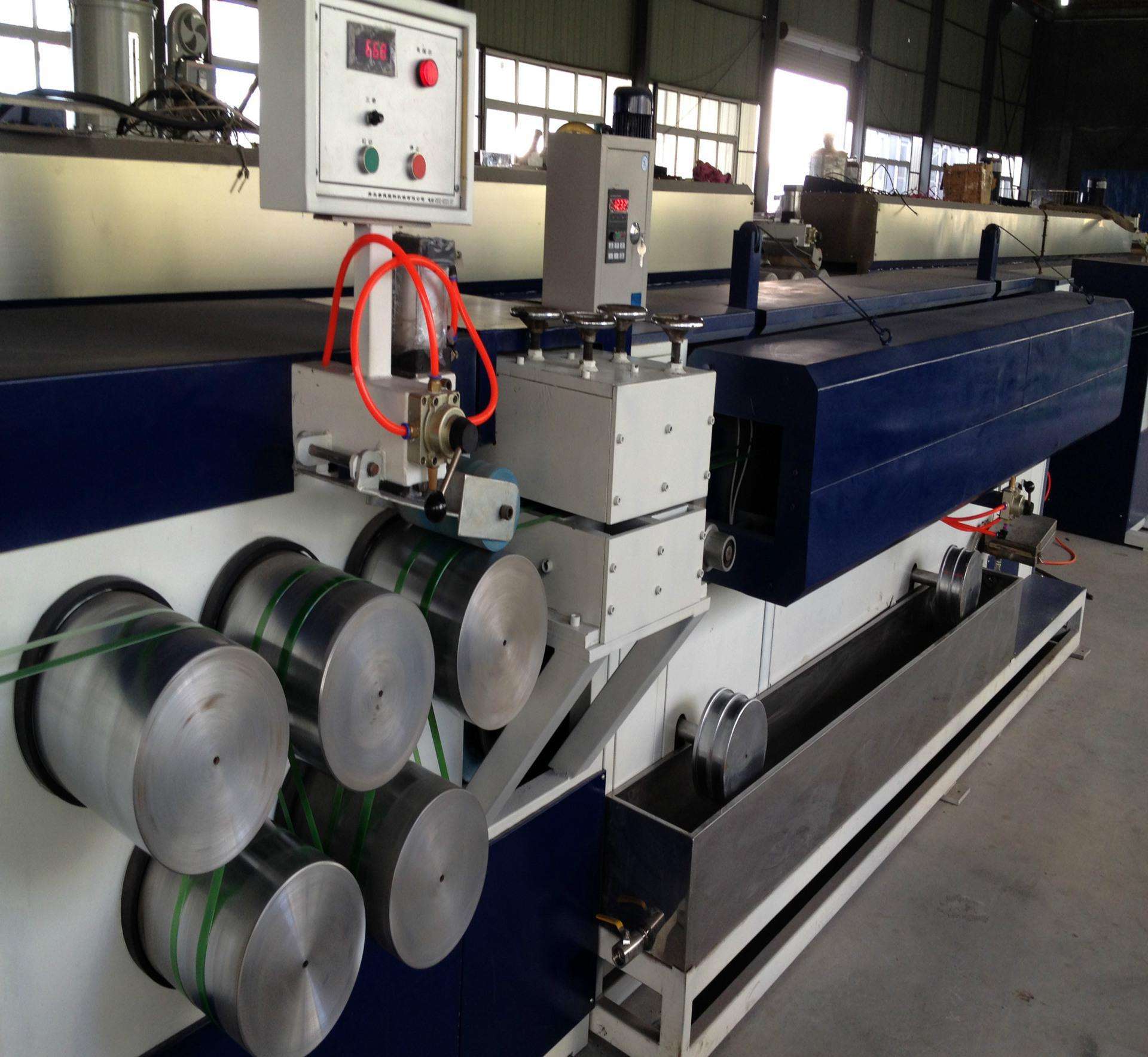 塑料扁絲拉絲機我公司拉絲機進行多次改進,可利用**再生料,粉料或顆粒料拉製扁絲。塑料扁絲拉絲機擠出機的螺杆、機筒采用38CrMoAlA合金鋼,經氮化處理,硬度達到Hv950以上。塑料扁絲拉絲機擠出機采用20CrMnTi合金鋼製造的硬齒輪減速器,鏈輪采用45#中碳鋼井經高頻淬火處理,牽引輥筒電鍍硬鉻,牽引機構增加自控張力收卷輥筒,擠出機料筒、三通和膜頭采用鑄鋁加熱圈加熱,經久耐用。