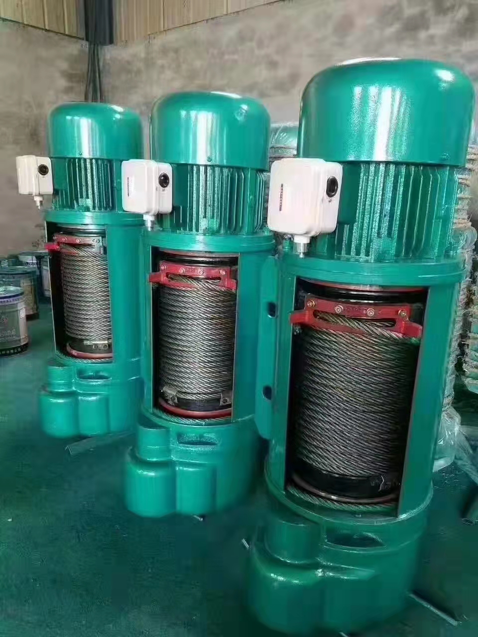 鋼絲繩電動葫蘆是一種具有結構緊湊、重量輕、體積小、零部件通用性強、操作方便等優點的小型起重設備,主要用於各種提升、牽移、裝卸重物,油罐倒裝焊接,如各種大中型砼、鋼結構及機械設備的安裝和移動,適用於建築安裝公司、廠礦的土木建築工程及橋梁施工、電力、船舶、汽車製造、建築、公路、橋梁、冶金、礦山、邊坡隧道、井道治理防護等基礎建設工程的機械設備。鋼絲繩電動葫蘆還屬於特種起重設備,它既可以單獨安裝在工字鋼上,也可以配套安裝在電動或手動單梁、雙梁、懸臂、龍門等起重機上使用。電機一般使用的是錐型電機,停止後自動鎖死抱閘,與其配套的鋼絲繩包括磷化塗層鋼絲繩、鍍鋅鋼絲繩光麵鋼絲繩