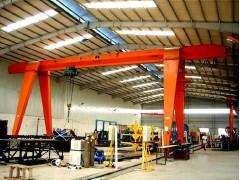 它的金屬結構像門形框架,承載主梁下安裝兩條支腳,可以直接在地麵的軌道上行走,主梁兩端可以具有外伸懸臂梁。