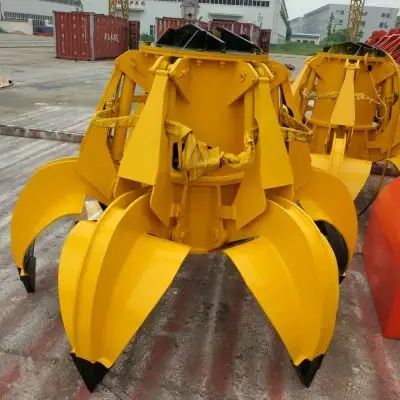 抓鬥,是指起重機抓(zhua)取(qu)幹(gan)散(san)貨(huo)物(wu)的(de)專(zhuan)用(yong)工(gong)具(ju)。由(you)兩(liang)塊(kuai)或(huo)多(duo)塊(kuai)可(ke)啟(qi)閉(bi)的(de)鬥(dou)狀(zhuang)顎(e)板(ban)合(he)在(zai)一(yi)起(qi)組(zu)成(cheng)容(rong)物(wu)空(kong)間(jian),裝(zhuang)料(liao)時(shi)使(shi)顎(e)板(ban)在(zai)物(wu)料(liao)堆(dui)中(zhong)閉(bi)合(he),物(wu)料(liao)被(bei)抓(zhua)入(ru)容(rong)物(wu)空(kong)間(jian),卸(xie)料(liao)時(shi)顎(e)板(ban)在(zai)料(liao)堆(dui)上(shang)懸(xuan)空(kong)狀(zhuang)態(tai)下(xia)開(kai)啟(qi),物(wu)料(liao)散(san)落(luo)在(zai)料(liao)堆(dui)上(shang),顎(e)板(ban)的(de)開(kai)合(he)一(yi)般(ban)由(you)起(qi)重(zhong)機(ji)起(qi)升(sheng)機(ji)構(gou)鋼絲繩操縱。抓鬥作業無繁重體力勞動,可達到較高的裝卸效率並確保安全,是港口主要幹散貨裝卸工具。按作業貨物的種類,可分為礦石抓鬥、煤炭抓鬥、糧食抓鬥、木材抓鬥等。