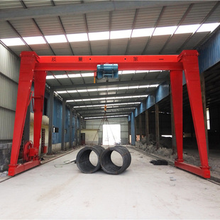 它的金屬結構像門形框架,承載主梁下安裝兩條支腳,可以直接在地麵的軌道上行走,主梁兩端可以具有外伸懸臂梁。