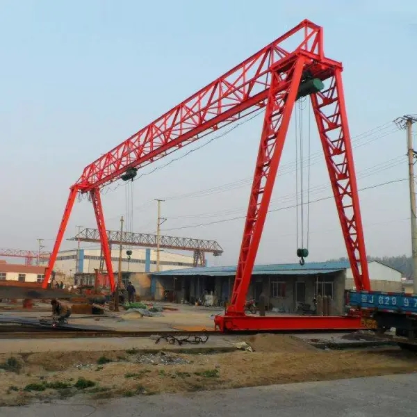 門式起重機橋式起重機的一種變形,又叫龍門吊。主要用於室外的貨場、料場貨、散貨的裝卸作業。門式起重機具有場地利用率高、作業範圍大、適應麵廣、通用性強等特點,在港口貨場得到廣泛使用。