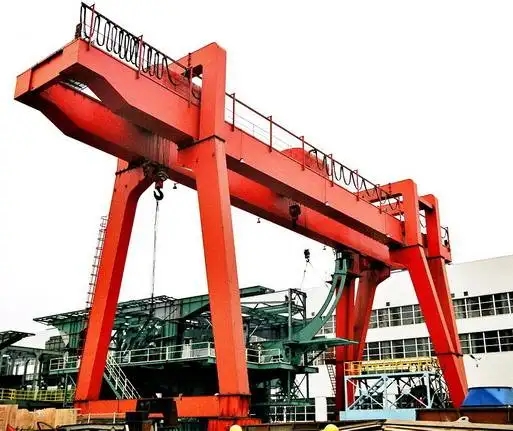 它的金屬結構像門形框架,承載主梁下安裝兩條支腳,可以直接在地麵的軌道上行走,主梁兩端可以具有外伸懸臂梁。