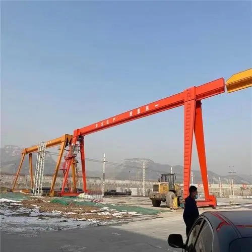 它的金屬結構像門形框架,承載主梁下安裝兩條支腳,可以直接在地麵的軌道上行走,主梁兩端可以具有外伸懸臂梁。